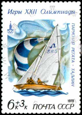 Sc#B80莫斯科奥运,会徽及帆船赛附捐票6k+3k (5-2) 1枚