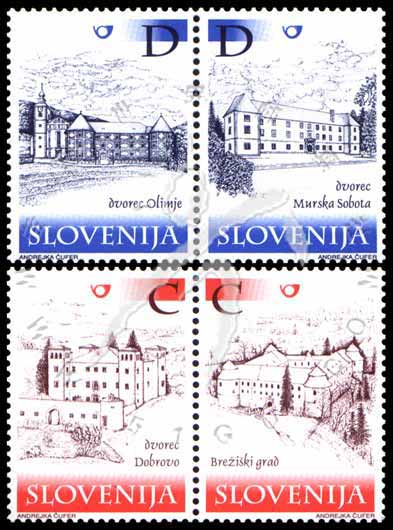城堡和庄园,Dvorec Dobrovo、Breziski grad、Dvorec Olimje及Dvorec Murska Sobota四处城堡和庄园C、D类邮资票4全