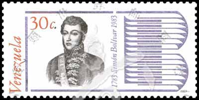 邮票介绍:Sc#1193 玻利瓦尔(1783-1830)诞生200周年(第3组)30c (2-1) 1枚