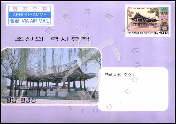 历史遗产,著名风景区安州的Paeksang亭航空邮资简1全
