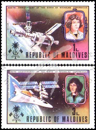 Sc#480,482 哥白尼诞生500周年,头像及太空实验室1枚