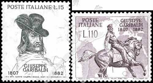 Sc#733-34 民族解放运动领袖加里波弟诞生150年,肖像画(2全) 1枚