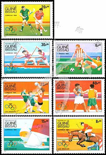 Sc#571-77 洛杉矶奥运会,足球、帆船、拳击等(7全) 1枚