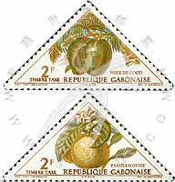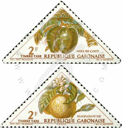 Sc#J38-39 水果:椰子和柚子三角形欠资邮票2f 1枚