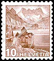 Sc#229 风光,南峭峰、希永的奇隆城堡普票10c 1枚