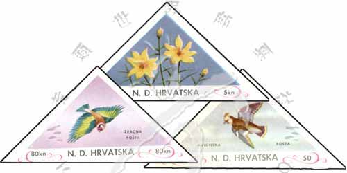 花(5kn)鸟(50,80kn)无齿三角票(3全)1枚
