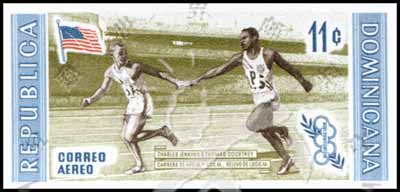 Sc#C106 奥运百米接力冠军美国詹金斯与考特尼无齿航空11c (8-6) 1枚