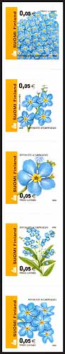 勿忘我草等花卉欧元不干胶自贴普票5c (5联) 1枚