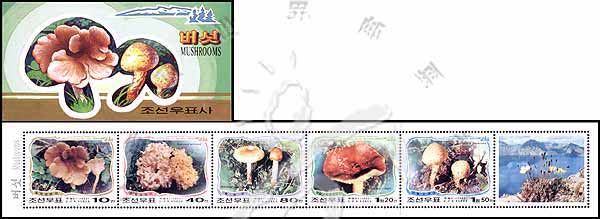 磨菇,药用多孔菌、甘蓝菌、白鞘苞拟鹅膏、呕吐红菇、鳞耳等小本票(5票,带1枚附票)