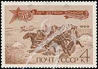 Sc#3623 第一骑兵军50周年,绘画《机枪马车》4k 1全