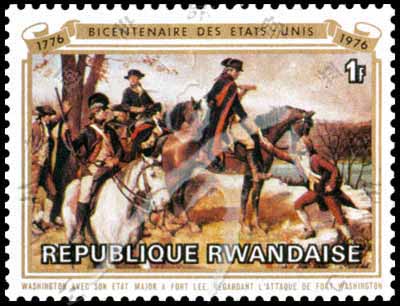 Sc#725 美国独立200周年,绘画《华盛顿在新州李堡》1fr (8-4) 1枚