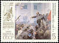 Sc#5592 十月革命胜利70周年绘画:列宁演讲5k (5-2) 1枚