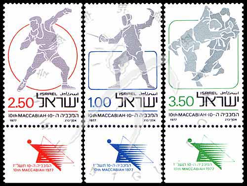 第10届马加比厄运动会(在以色列四年一度举办的类似奥运会的国际犹太人运动会),击剑、铅球及柔道带边纸3全