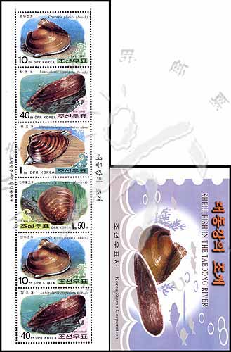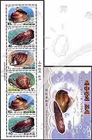 大同江贝类,冠贝、矛贝、花贝及两耳珠母贝等小本票(6票)