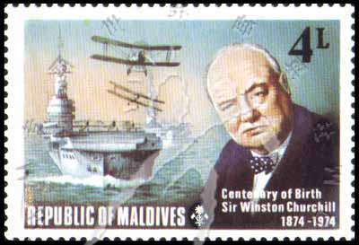 Sc#527 丘吉尔诞生百年,丘吉尔与航空母舰4l (8-4) 1枚