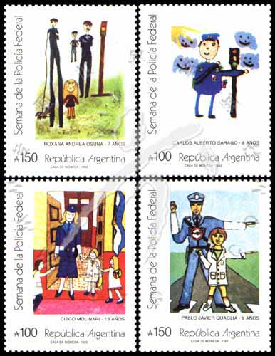 邮票介绍:Sc#1668-71 联邦警察周,儿童绘画100a, 150a(4全) 1枚