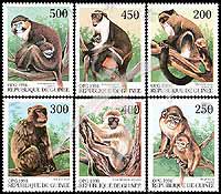 猴,白臀长尾猴(200f`)、绿猴(400f)、黛安娜鬚猴(450f)等(6全) 1枚