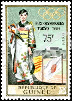 Sc#360 东京奥运会,日本女子、国旗及体育馆75f (7-6) 1枚