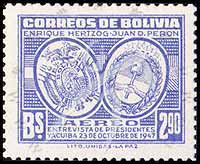 Sc#C118 玻利维亚和阿根廷总统会晤,两国国徽航空票2.90b 1枚