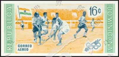Sc#C107 奥运曲棍球冠军印度队航空无齿票16c (8-7) 1枚