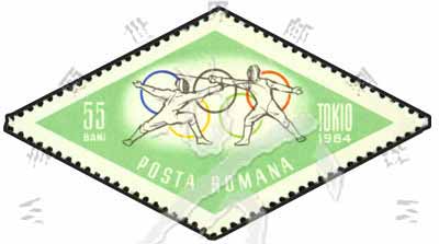 Sc#1669 东京第18届奥运会,击剑菱形票55b (8-5) 1枚