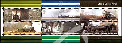 英国蒸汽机车问世200周年,早期机车及铁路小版张(6票)