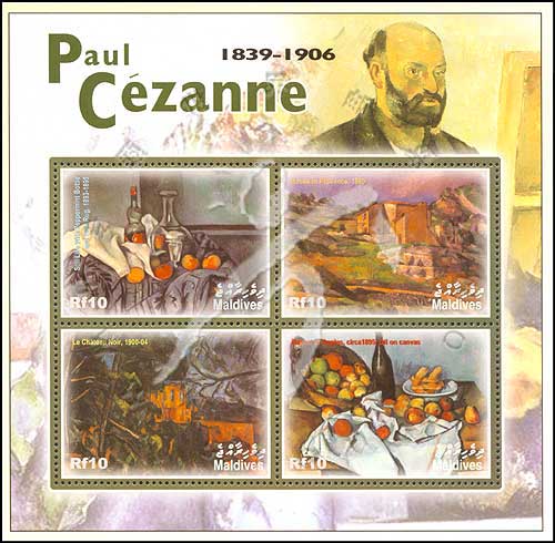 现代绘画之父保罗·塞尚经典画作《普罗旺斯的房子》、《黑堡》及《静物苹果蓝子》等小全张(4票)