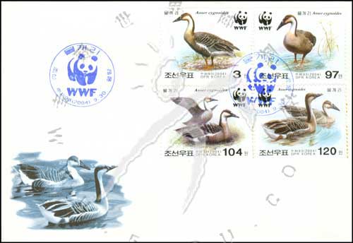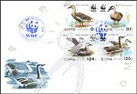 鸿雁及WWF世界野生动物基金会徽志4全邮票首日封