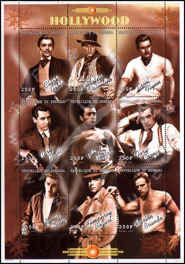 好莱坞男明星,克拉克.盖博、马龙.白兰度、加利.格兰特等小版张含9票)