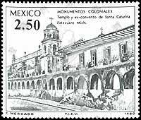 Sc#1212 殖民时期建筑,帕茨夸罗圣.凯瑟琳修道院2.5p (4-2) 1枚