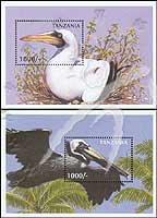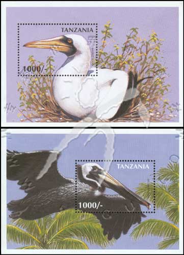 鸟类,蓝脸鲣鸟及棕鹈鹕2枚小型张