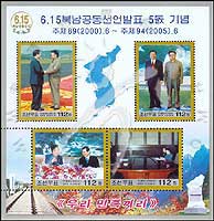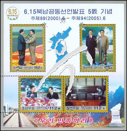朝韩首脑会晤5周年,韩国总统金大中及朝鲜领导人金正日握手、会谈及开会场景等小全张(4票)