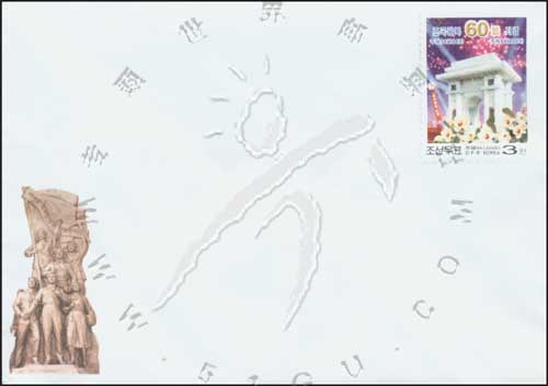 解放战争胜利60周年,平壤凯旋门邮资封1全
