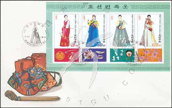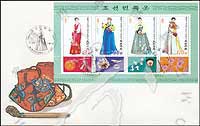 服饰,着各种朝鲜服的女子、佩饰及花卉等小全张首日封