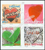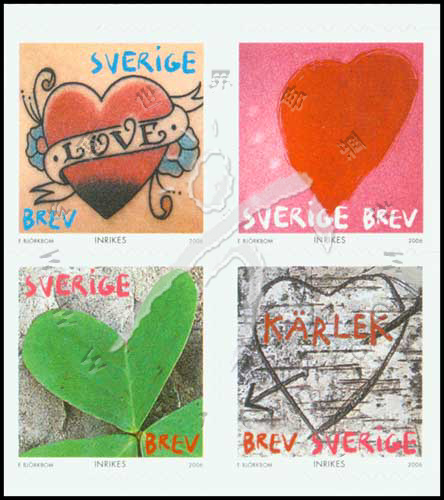情人节,刺青图案的爱心、心形的叶瓣、鲜红的心形图及丘比特之箭射中的爱心不干胶自贴票4联