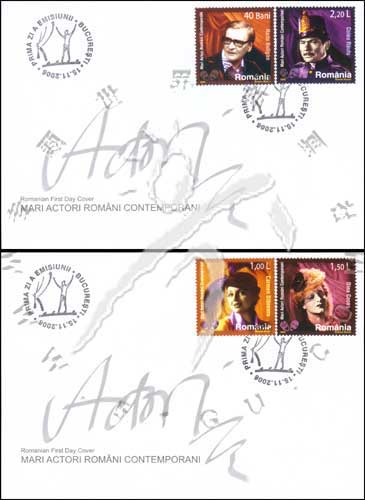 罗马尼亚当代著名演员,贝利甘·拉杜肖像、卡门·斯特内斯库肖像、迪娜·科恰肖像及柯里亚·络图肖像4全邮票首日封2全