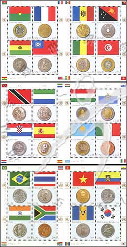 国旗和钱币系列二大全套3枚小版张(纽约、维也纳、日内瓦3种版本)