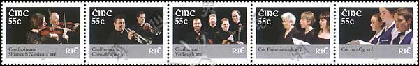 邮票介绍:爱尔兰表演团体,交响乐团、管弦乐队、四重唱及唱诗班等5联