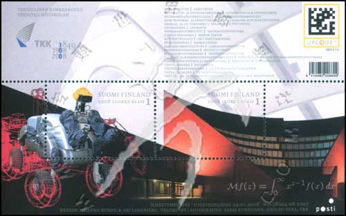 赫尔辛基理工大学建校百年,教学主楼外景、设计作品及公式等小全张(2票)
