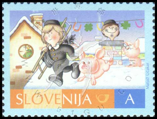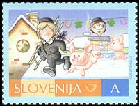 新年,房屋、卡通人物及卡通猪A类邮资票1全