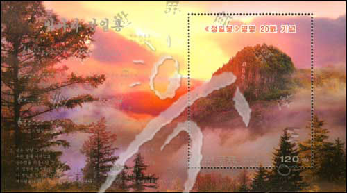 正日峰命名20周年,山峰、松树及乐谱小型张