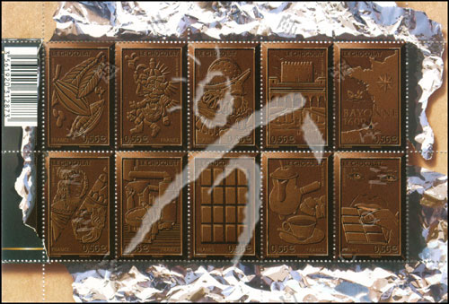 巧克力,可可树的花叶果、巴荣纳港位置、巧克力生产间、整块巧克力、品尝巧克力带巧克力香味小版张(10票)