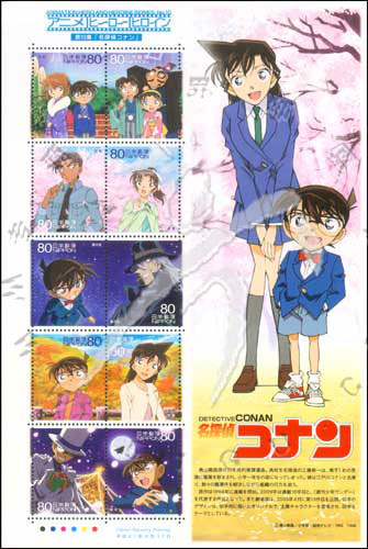 动画片《名侦探柯南》,主角柯南、工藤新一及毛利兰等小版张(10票)(我社已售缺)