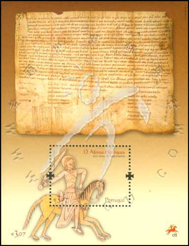 葡萄牙首位国王艾方索·亨利克斯诞生900周年,骑马雕像及文稿小型张