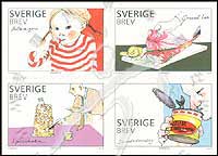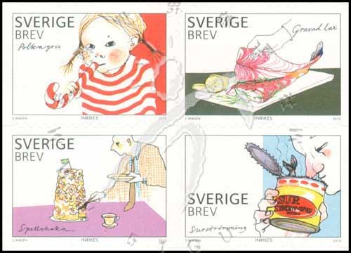 瑞典美食,腌制鲱鱼、金字塔蛋糕及黄苺浆等不干胶自贴票4联