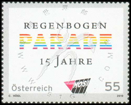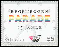 世界首套同性恋题材邮票—彩虹大游行15周年,徽志及德文“彩虹游行15周年”1全