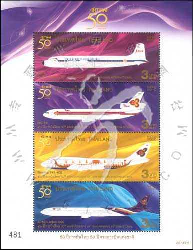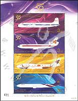 泰国国际航班开通50周年,客机凹凸压印票小全张(4票)