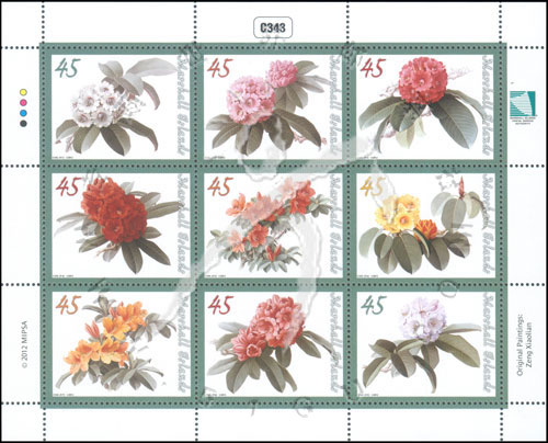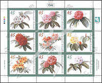 花卉,不同品种的杜鹃花小版张(9票)