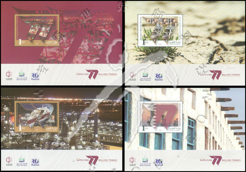 卡塔尔每年向他国提供770万吨的液化天然气,数字“77”及建筑等4枚小型张