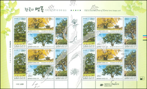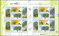 韩国老树系列二,黑松树、银杏、榉树及磐松小版张(4 套共16票)